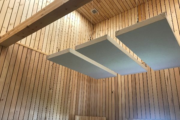 響きとは?音楽や会話に豊かさや暖かみを与えますが、反対に響きすぎると室内の騒々しさやレッスンの会話に支障が生まれます、鏡面が全面反射性になってしまうために室内での残響時間は短いほうが良いと考えられます、また、吊下げ式音響調整パネルなどを使用して自らお好みの響きに調整することも可能です